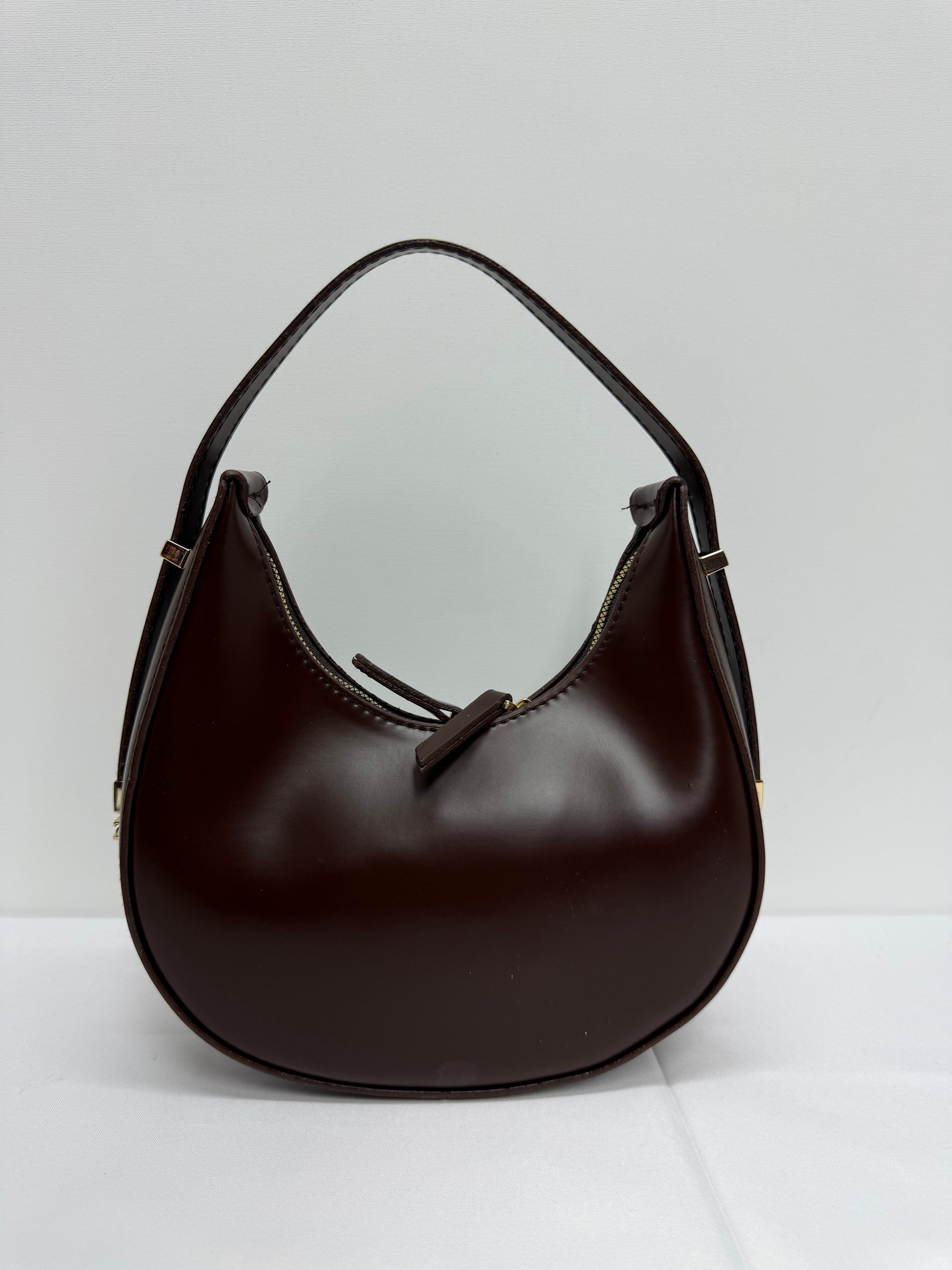PARLAK DERİ AYARNABİLİR KOL ASKILI BAGET ÇANTA