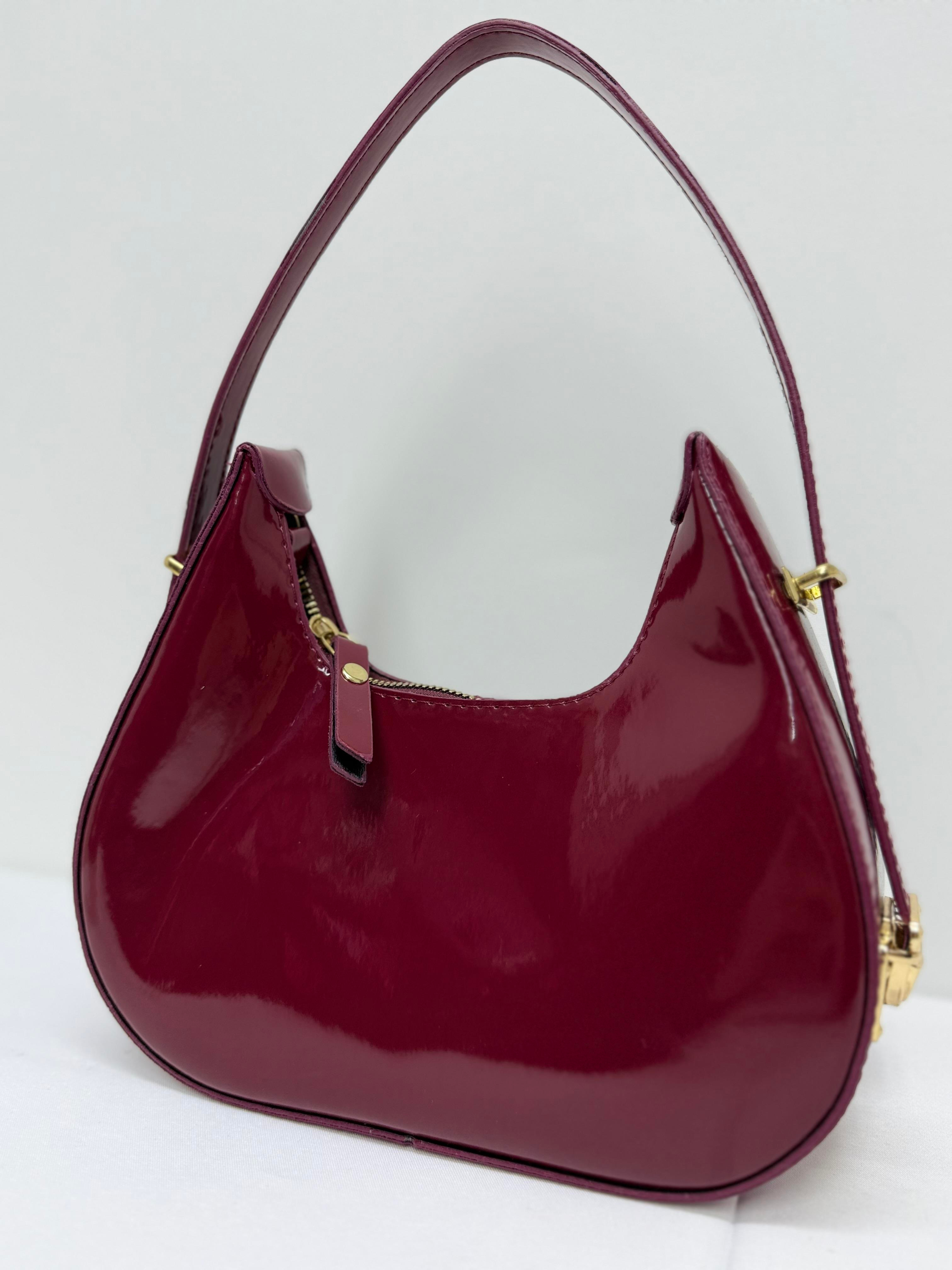 PARLAK DERİ AYARNABİLİR KOL ASKILI BAGET ÇANTA