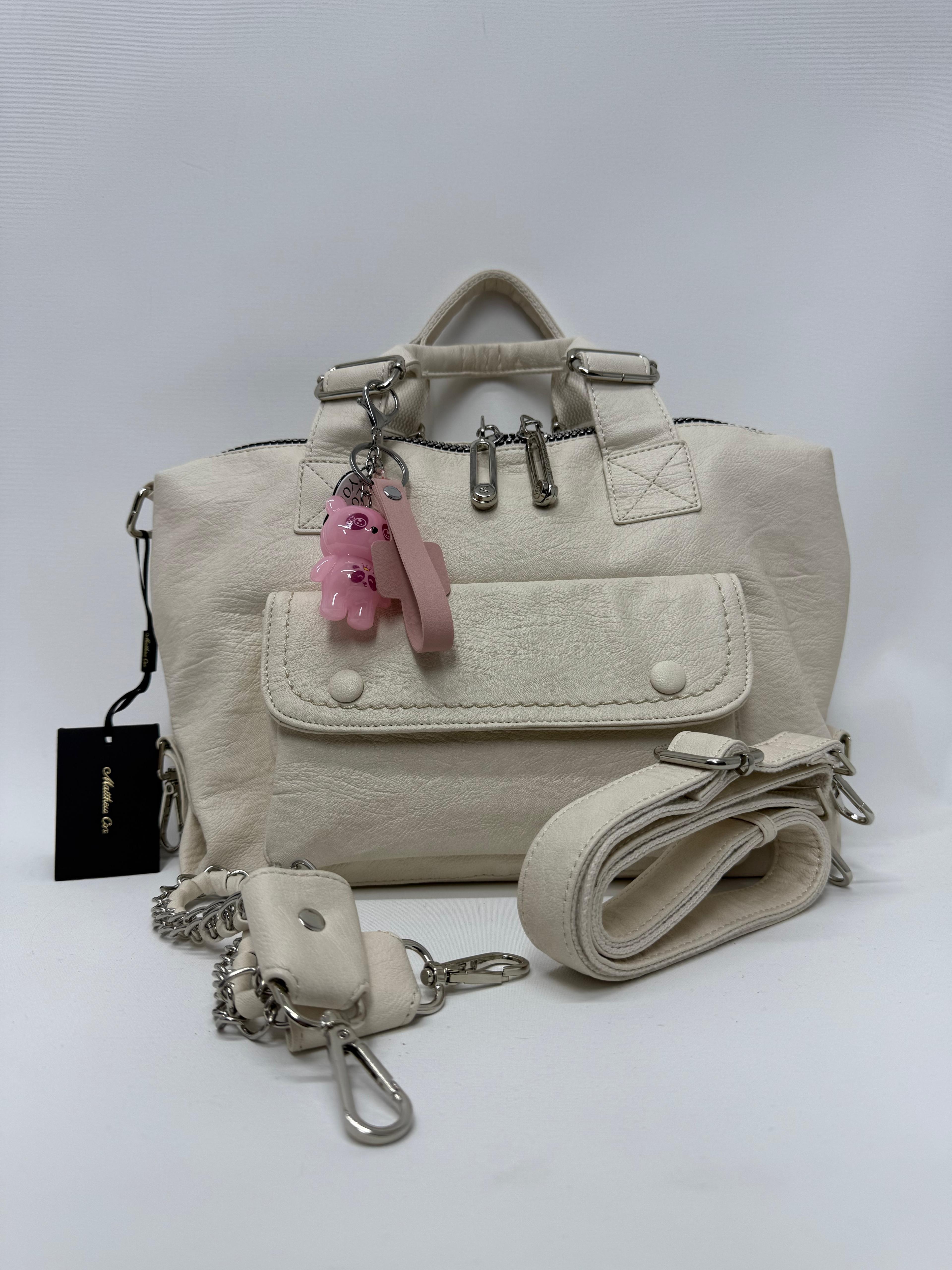 ŞTM Bölmeli İthal Yıkanmış Çanta Krem