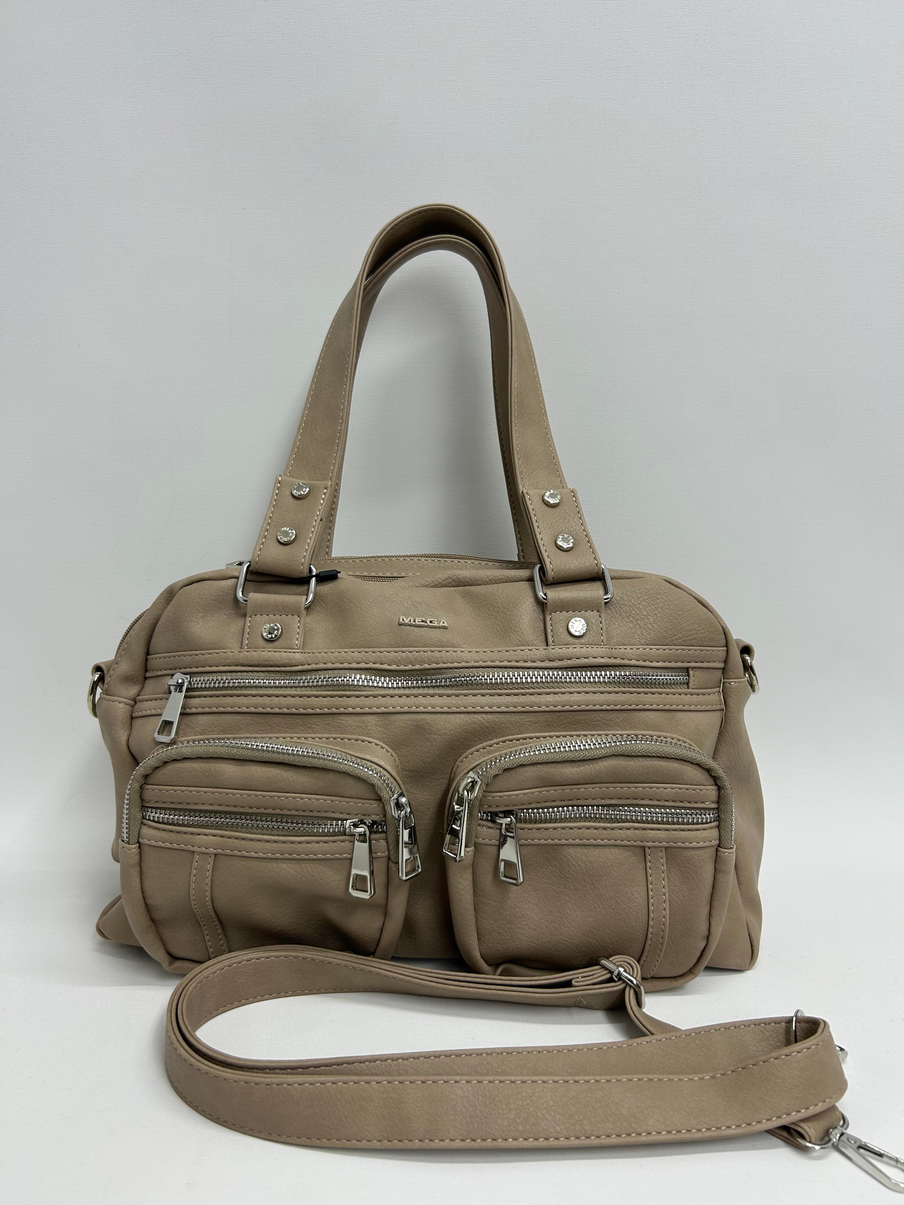 ŞTM Bölmeli Kadın Omuz ve Çapraz Askılı Çanta Bej