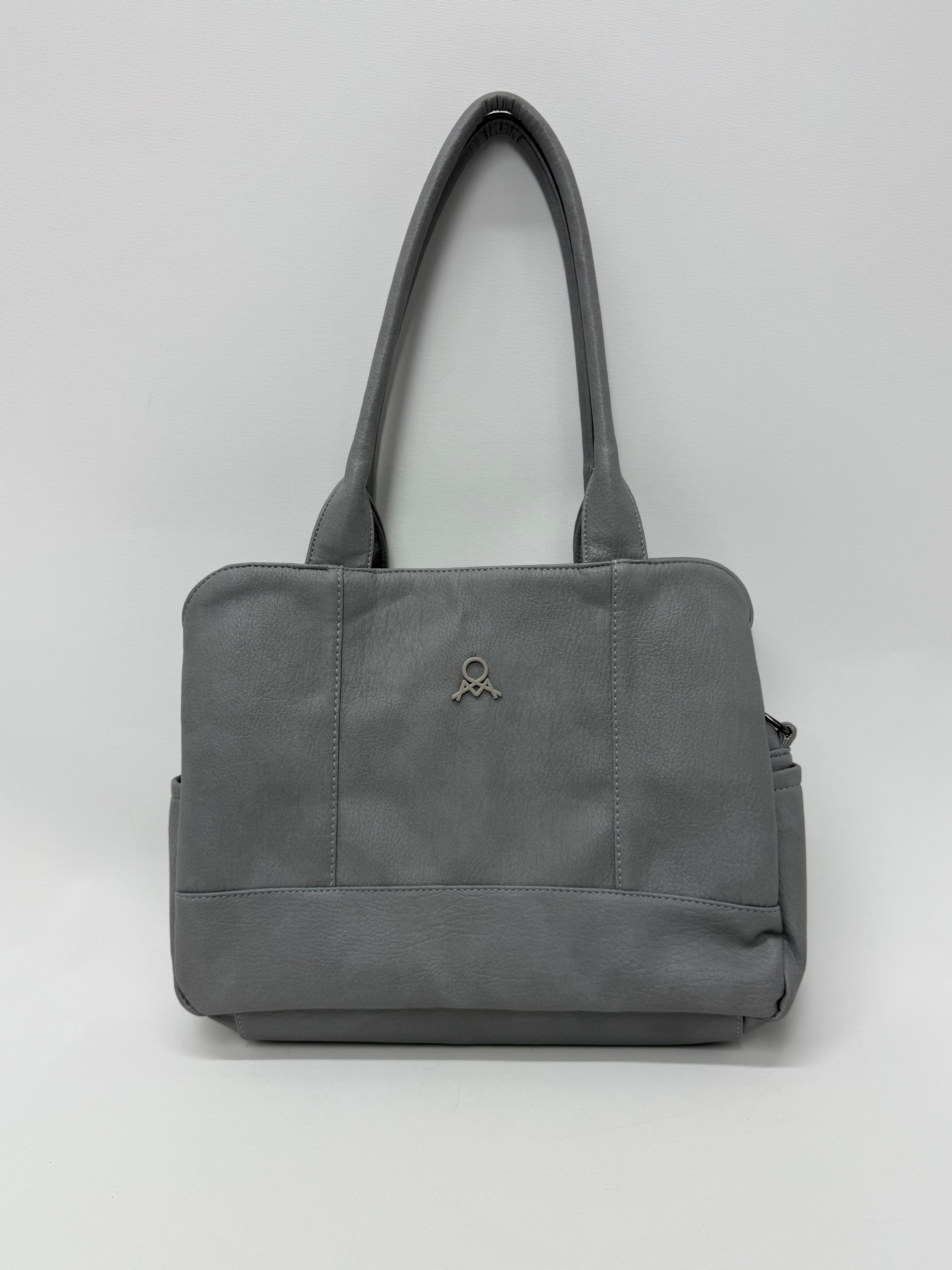 ŞTM Deri İki Bölmeli İçi Astarlı El ve Çapraz Omuz Çanta Gri