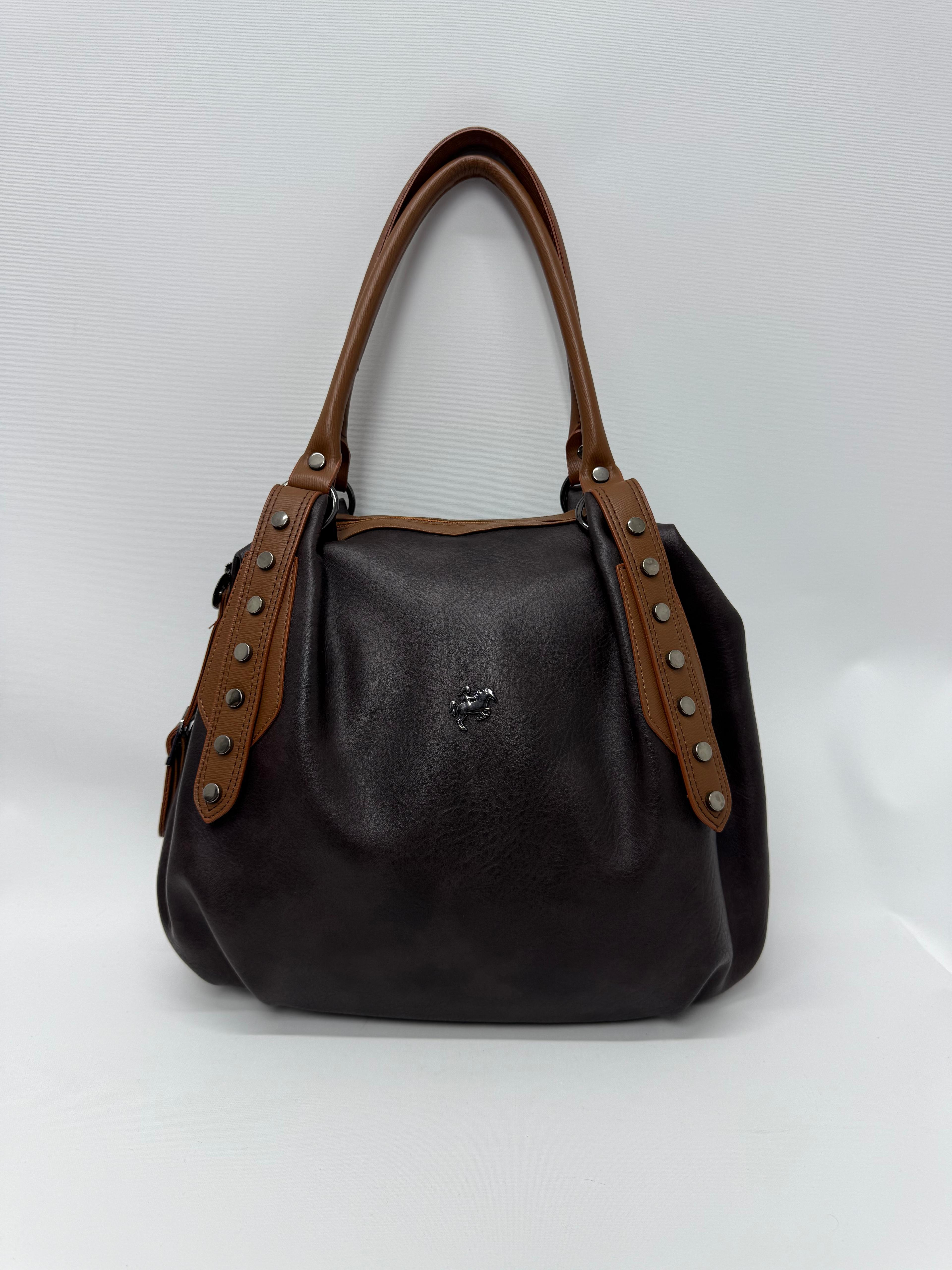 ŞTM Deri İki Bölmeli İçi Astarlı El ve Çapraz Omuz Çanta Kahve
