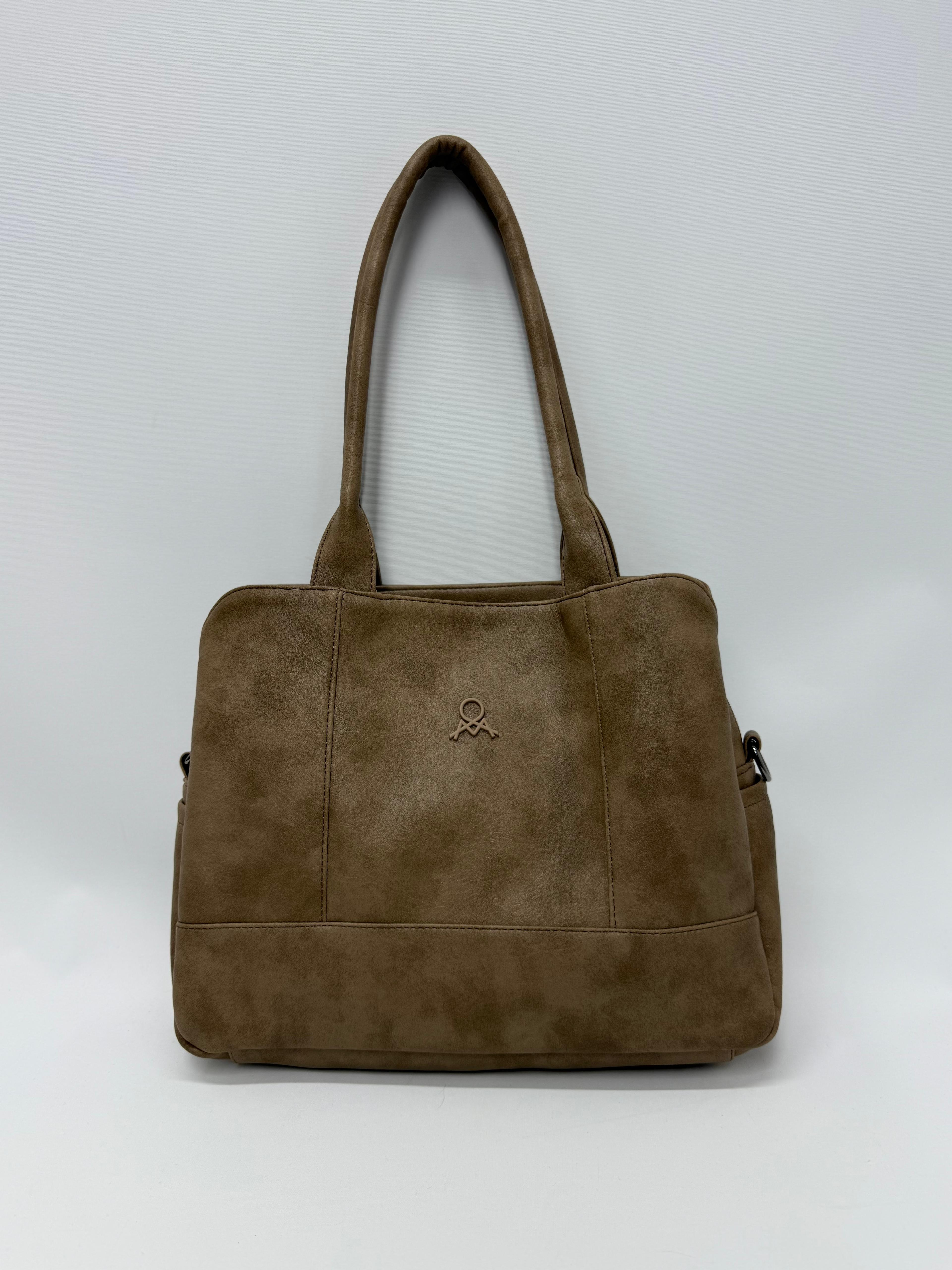 ŞTM Deri İki Bölmeli İçi Astarlı El ve Çapraz Omuz Çanta Krem