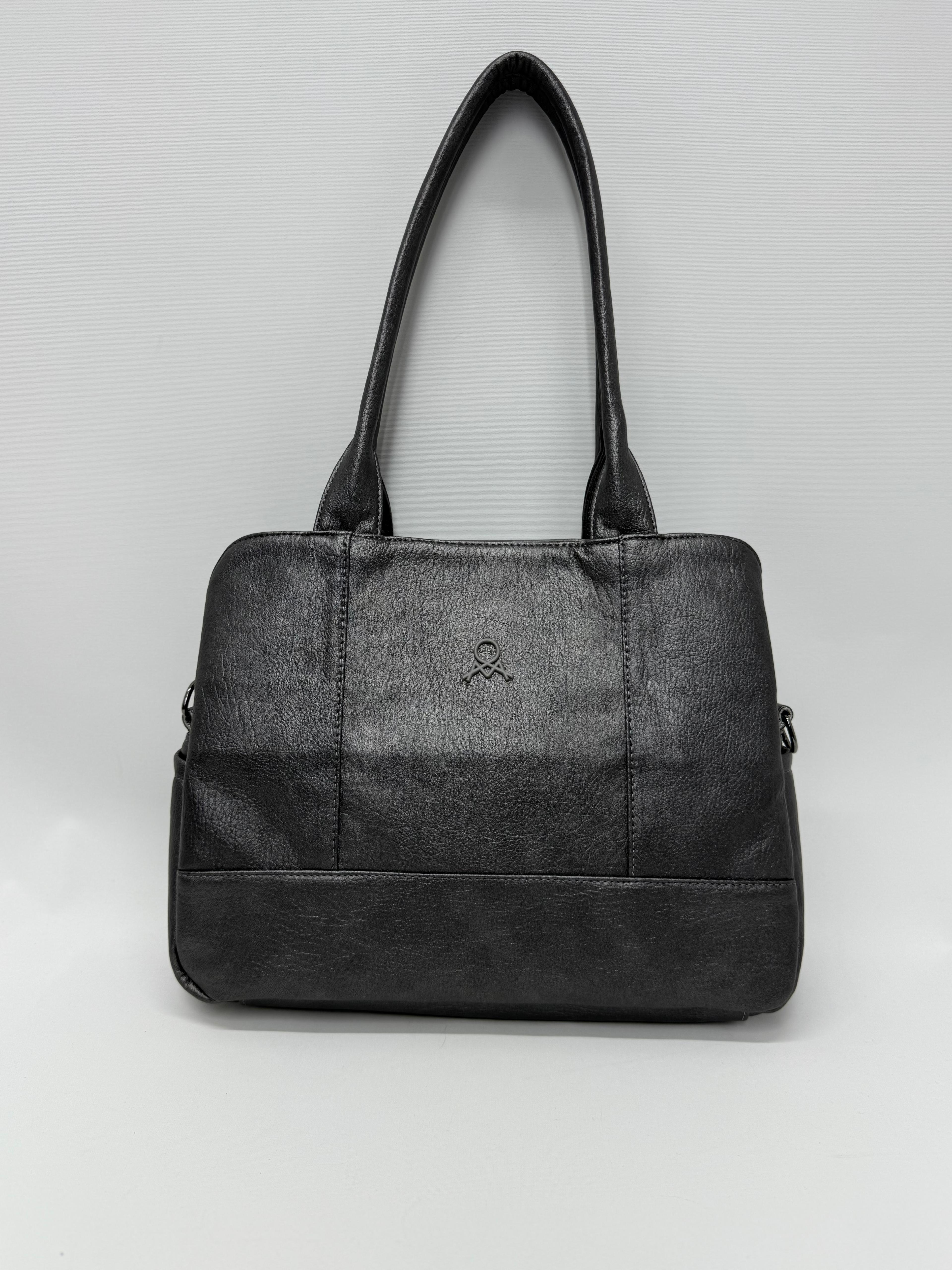 ŞTM Deri İki Bölmeli İçi Astarlı El ve Çapraz Omuz Çanta Siyah