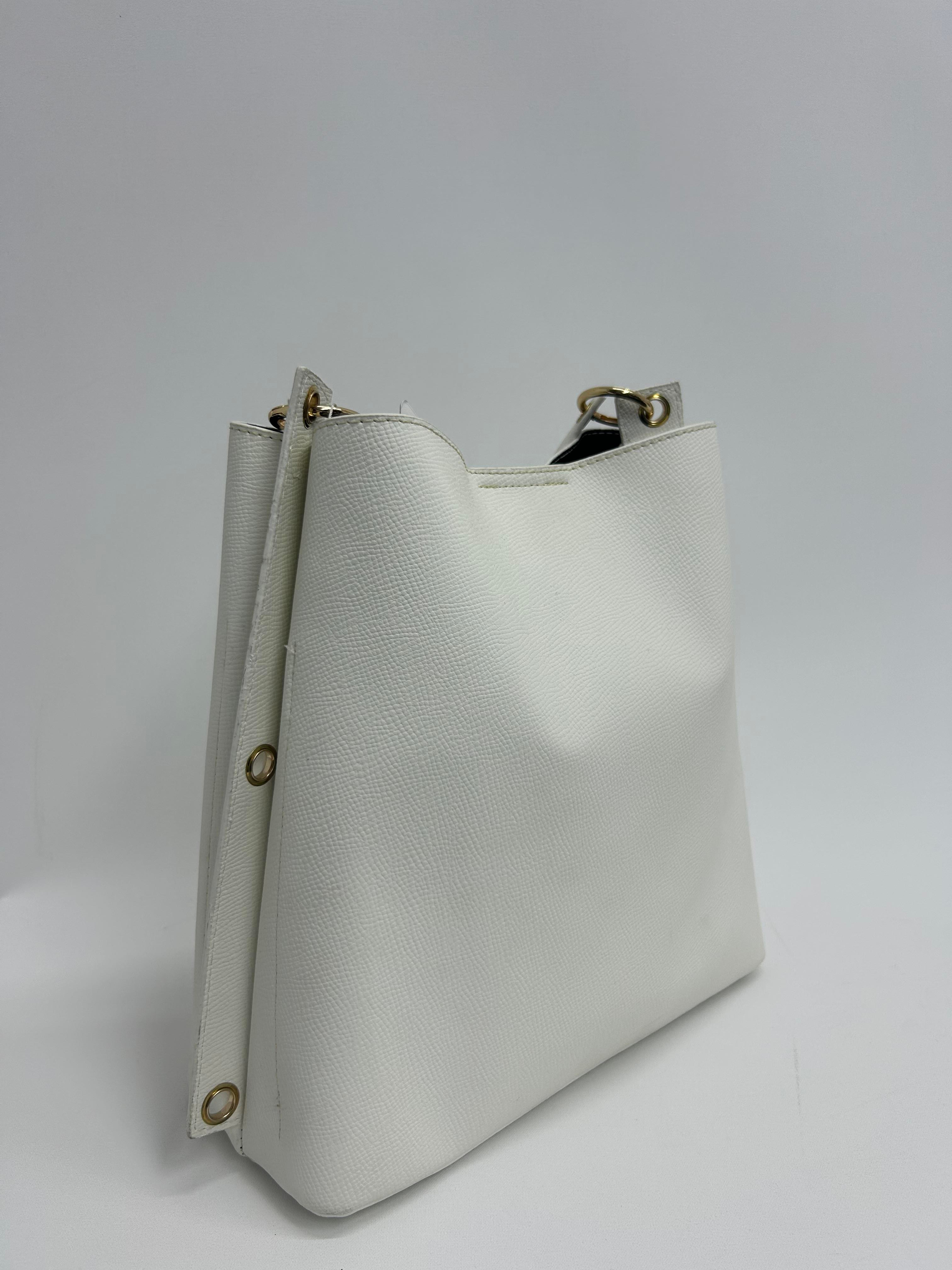 ŞTM Deri Kadın Kol Askılı ve Çapraz Kullanımlı Çanta Beyaz