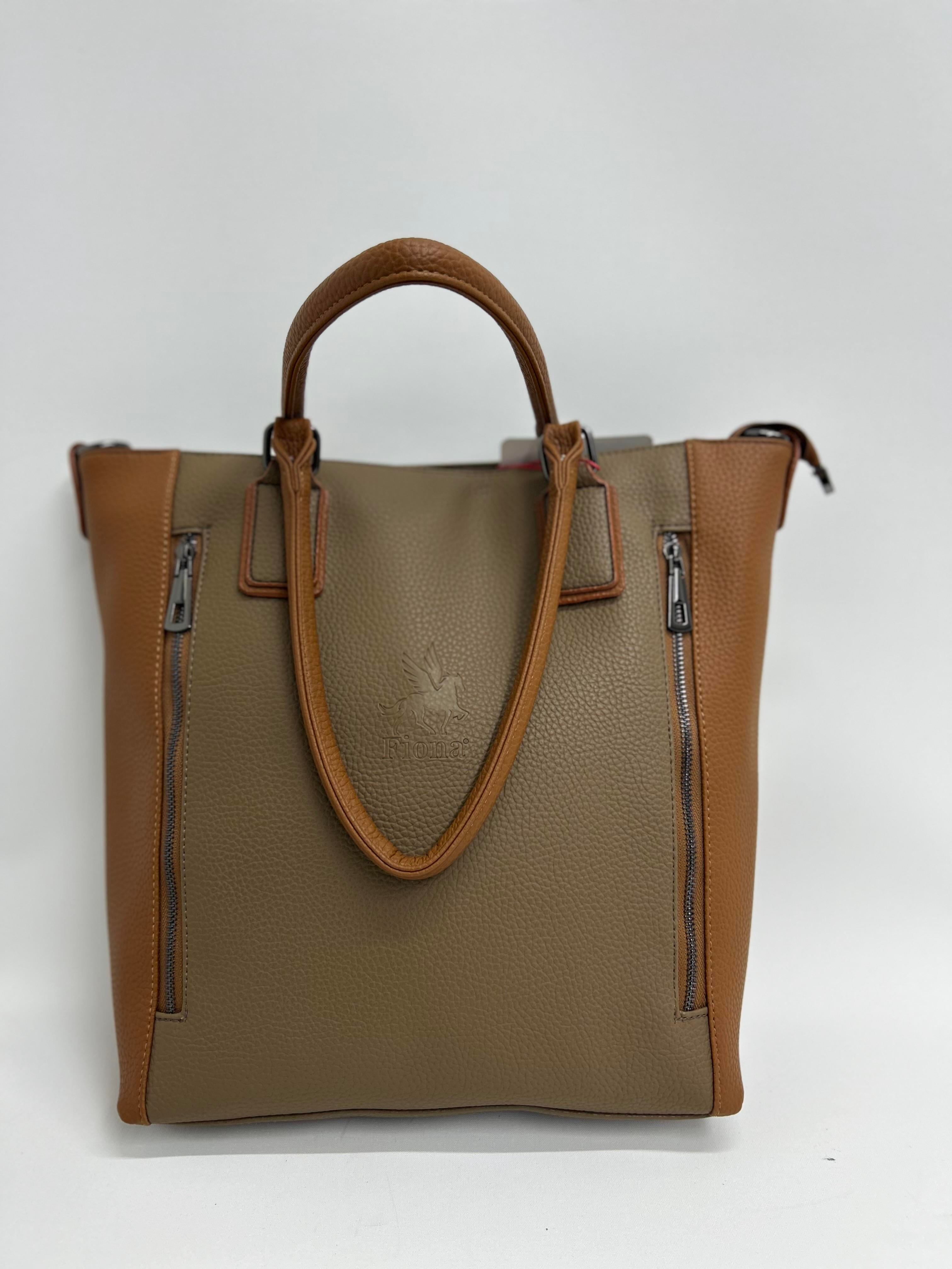 ŞTM Deri Kadın Omuz ve Çapraz Askılı Çanta Vizon