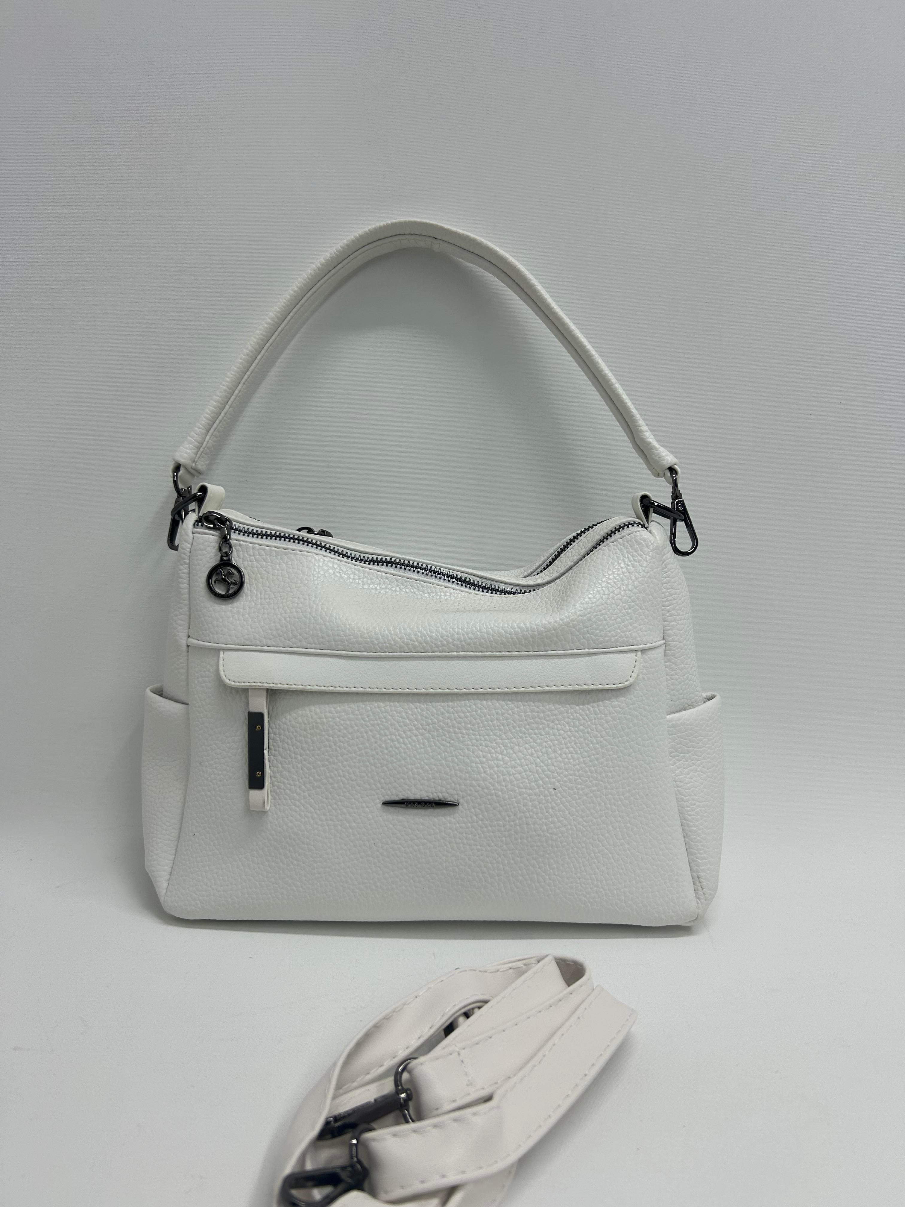 ŞTM Deri Üç Bölmeli İçi Astarlı El ve Çapraz Omuz Çanta Beyaz