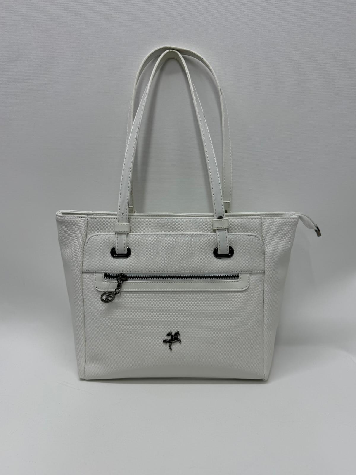 ŞTM Deri Üç Bölmeli İçi Astarlı El ve Çapraz Omuz Çanta Beyaz