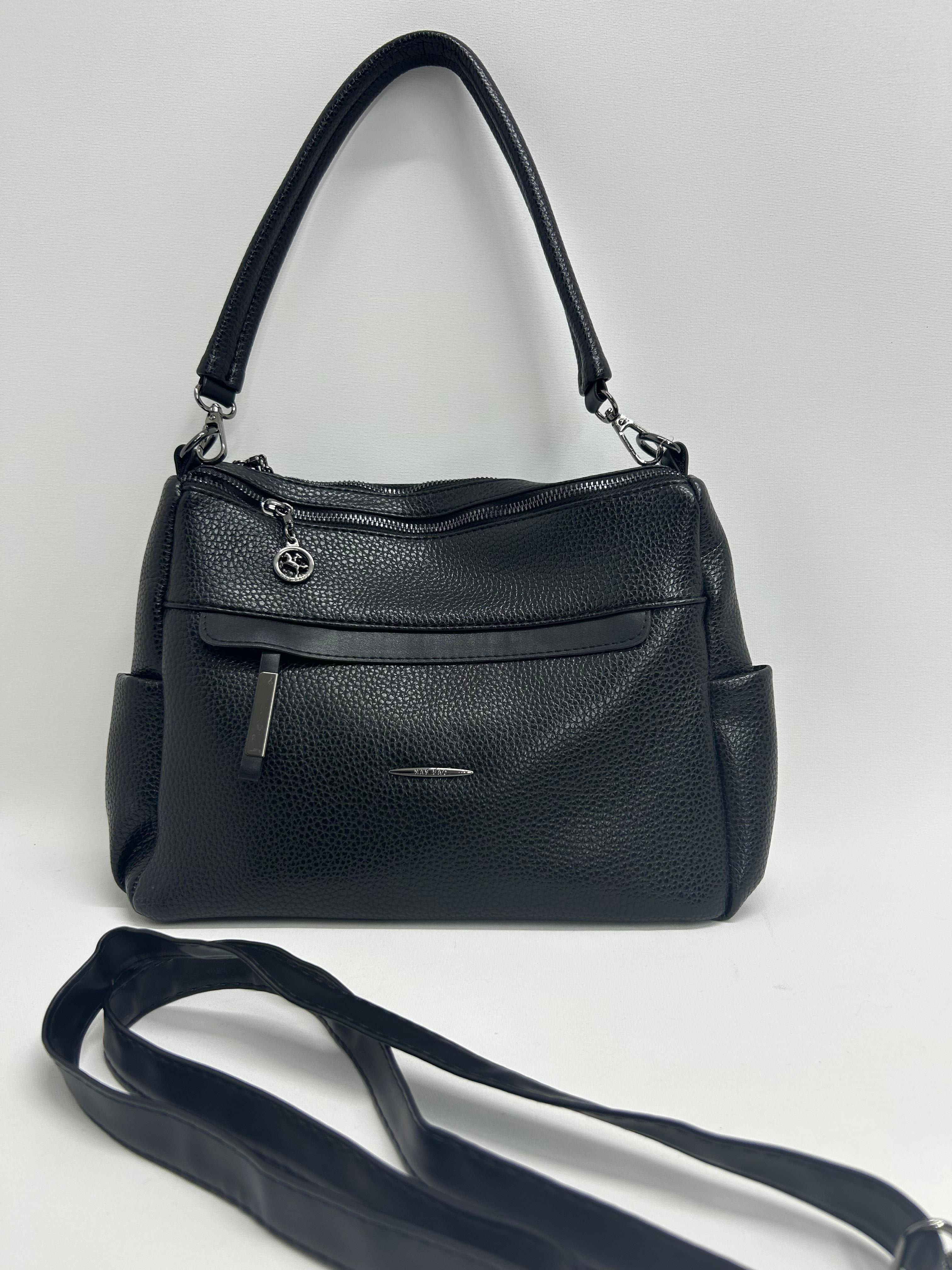 ŞTM Deri Üç Bölmeli İçi Astarlı El ve Çapraz Omuz Çanta Siyah