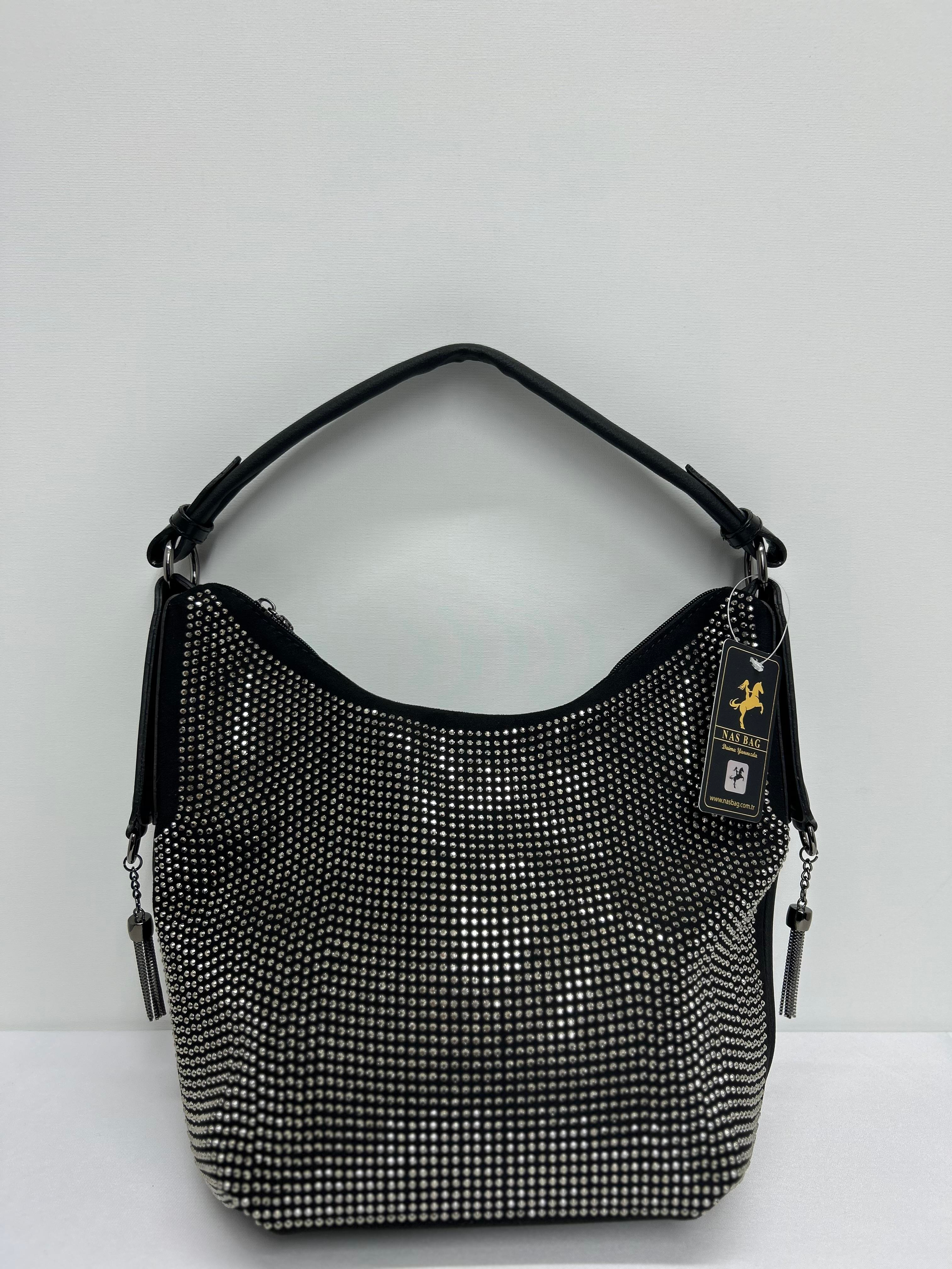 ŞTM Taş Detay Kadın Omuz ve Çapraz Askı Kol Çanta Siyah