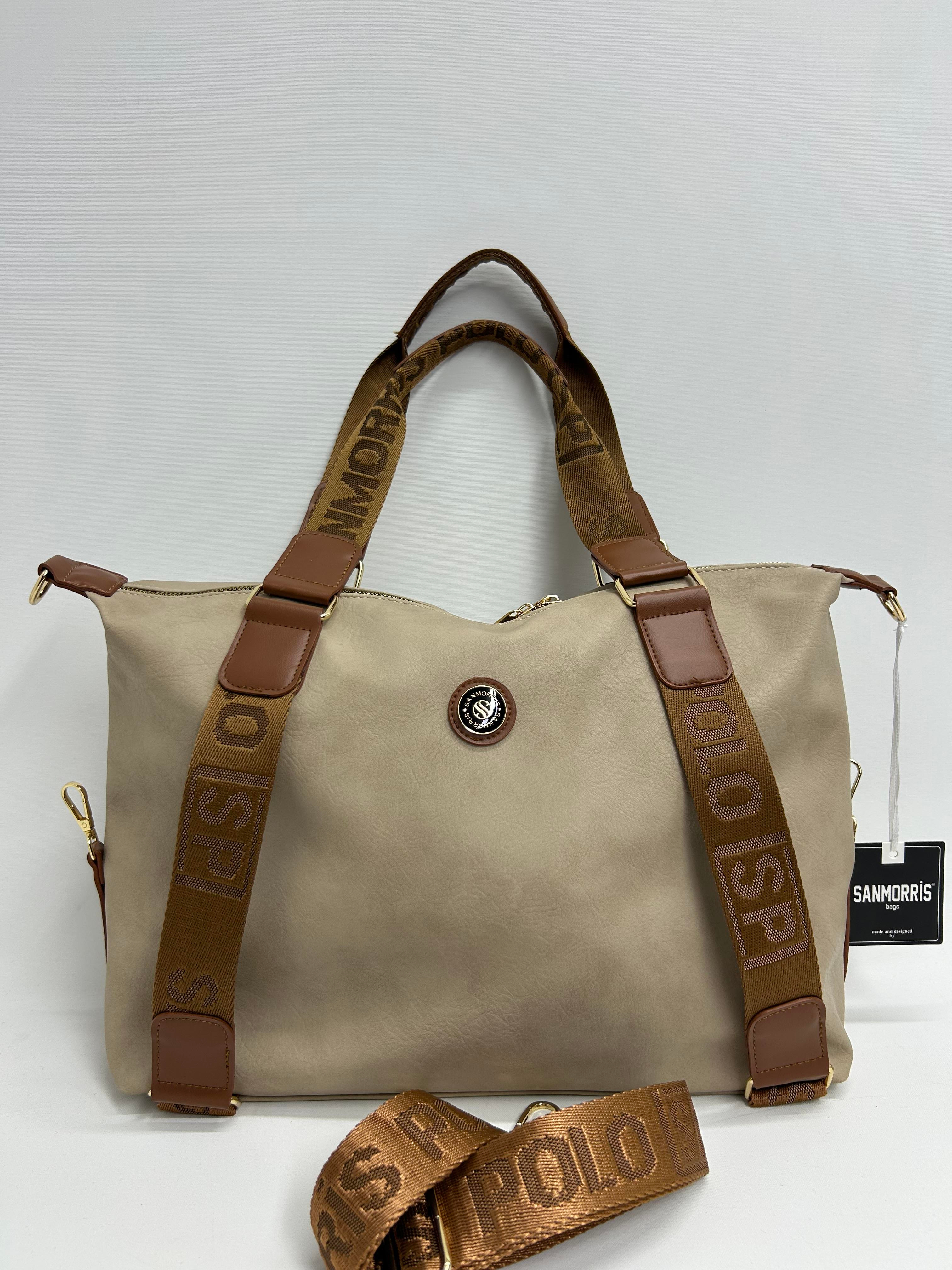 ŞTM Tek Fermuar Omuz ve Çapraz Askılı Çanta Bej