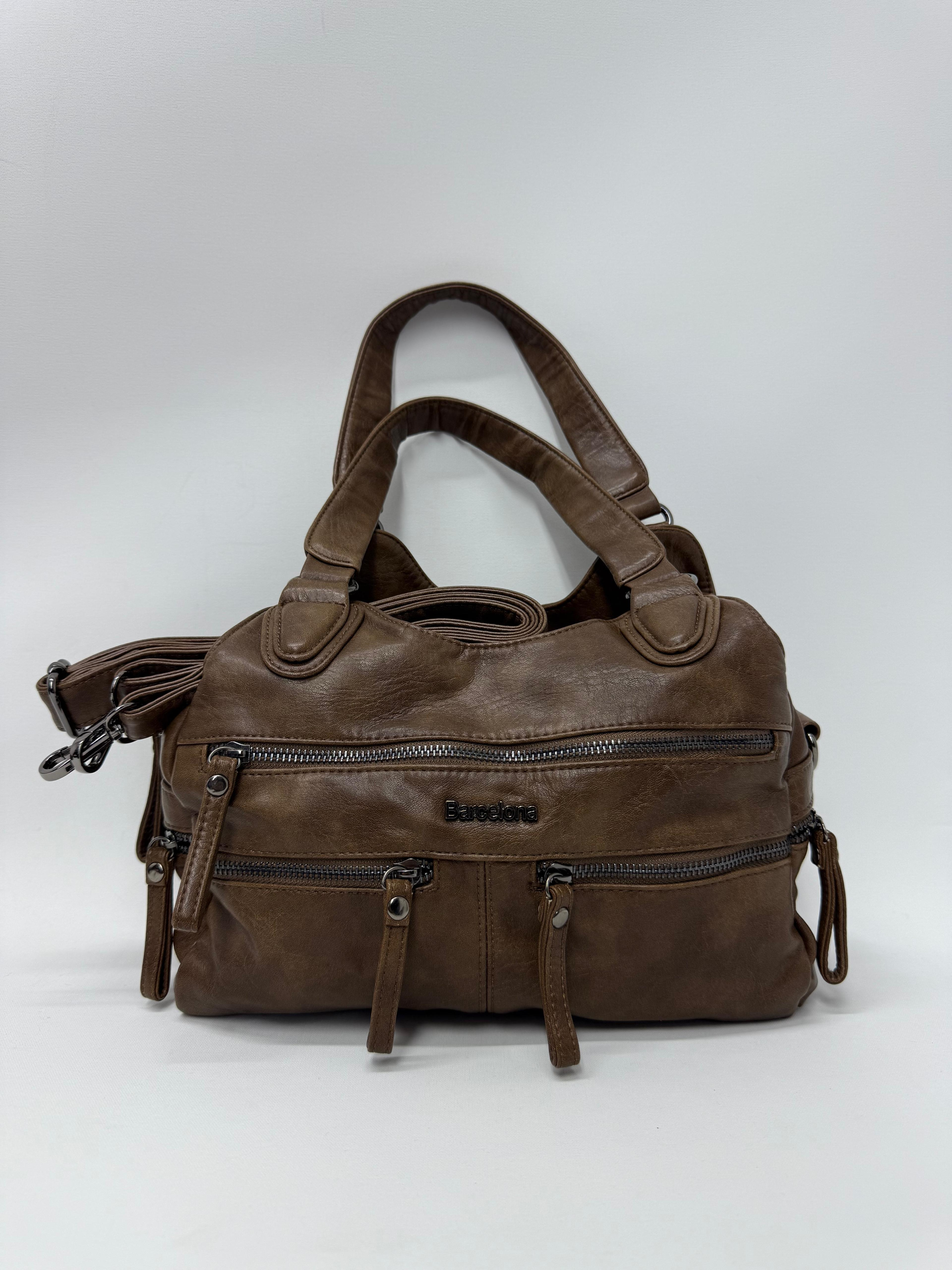 ŞTM Yıkamalı İthal Deri Üç Gözlü Çanta Taba